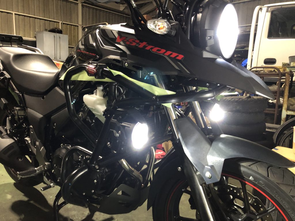 フォグランプの配線も終わりSP忠男のパワーボックスも取り付けました。パワーボックスとガードのクリアランスがなかったためガードを取り外し凹ませてクリアランスを確保。きれいに凹ますことが出来ました。純正サイドパニアとトップケースはジビに。定番のフロントスプロケットも15丁にしました。もちろんETC2.0も取り付けました。残すは明日入荷予定のグリップヒーター。ロングツーリング使用のVストローム250もうすぐ完成です。