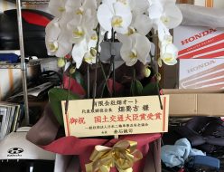 先日、畑オートの創業者畑要吉会長が長年自動車販売修理(二輪車を含む)に貢献したとのことで国土交通大臣から表彰されました。会長は体調を崩しているため店長が代わりに東京に行き授賞式に出席したのでした。店長は代理なので登壇しませんでしたが、緊張しまくりでした。
