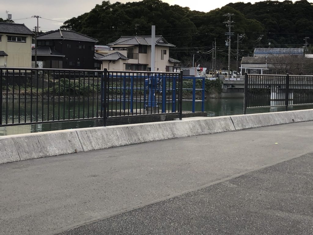 畑オートの横を流れる勝間田川にフェンスが出来ました。今までよりも安心して来店できます。