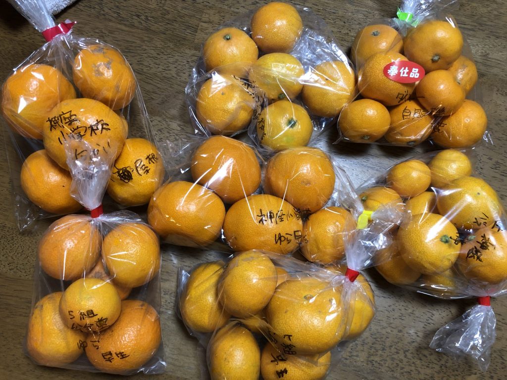 午後はミカン狩りではなくミカンを買いに神座へ。食べ比べようと無人販売七か所でミカンを買ってきました。ビニール袋にマジックで買った場所を記載し帰宅後食べ比べてみました。大きさ・皮の厚さ・甘味・酸味みんな違いました。店長が気に入ったのは2か所。酸味はほとんどなく甘い。どこの場所か知りたい方は店長まで。なので昨夜はトイレが近かった店長です。時期により品種が変わるので、またやってみます。みなさんもやってみてください。おもしろいですよ。