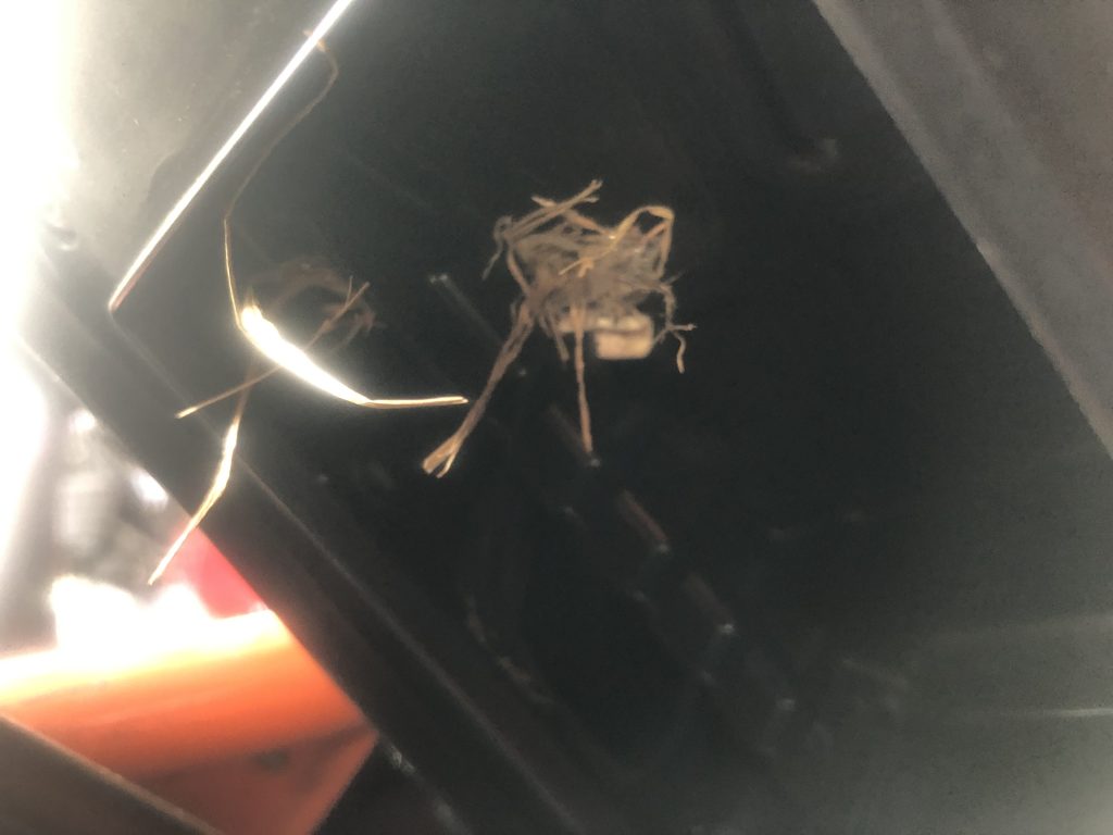 整備中のKTM390デューク。エアクリーナーの清掃をしようとフタを開けてみると・・・。ワラや枯草の塊が。走行中に吸い込んだ物ではない感じ。畑や田んぼの近くの軒下保管の車両ですが、デュークのエアの吸い込み口はサイドカバーの内側。鳥が入り込める場所ではありません。そうすると小さなネズミ?想像を膨らませている店長です。