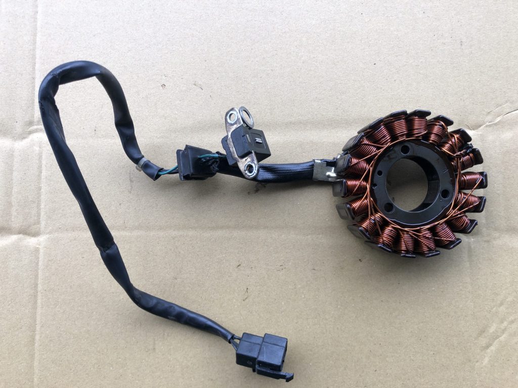 アドレスV125のステーターを交換。ファンカバーを外しファンを外しローターを外せばできると思っていた店長。アドレスV125のファンカバーは車体からエンジンを外さないとできないのですが(カバーの交換は何台もやっています)、ステーターはさらにエンジンカバーの内側(ほとんどの車種は外側)。オイルを抜いて外します。写真を撮っておけばよかったのですが、一気に作業したい店長。相変わらず写真は撮り忘れました。こんなにめんどくさいとは!