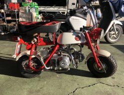 点検整備で入庫の1967年に発売されたZ50M。5インチのタイヤで前後サスペンション無し、ウインカーも付いていません(当時の基準ではなくて良かった)。公道で乗るには怖いなあ。ちなみにチェンジは1ダウン2アップです。大切にしてください。