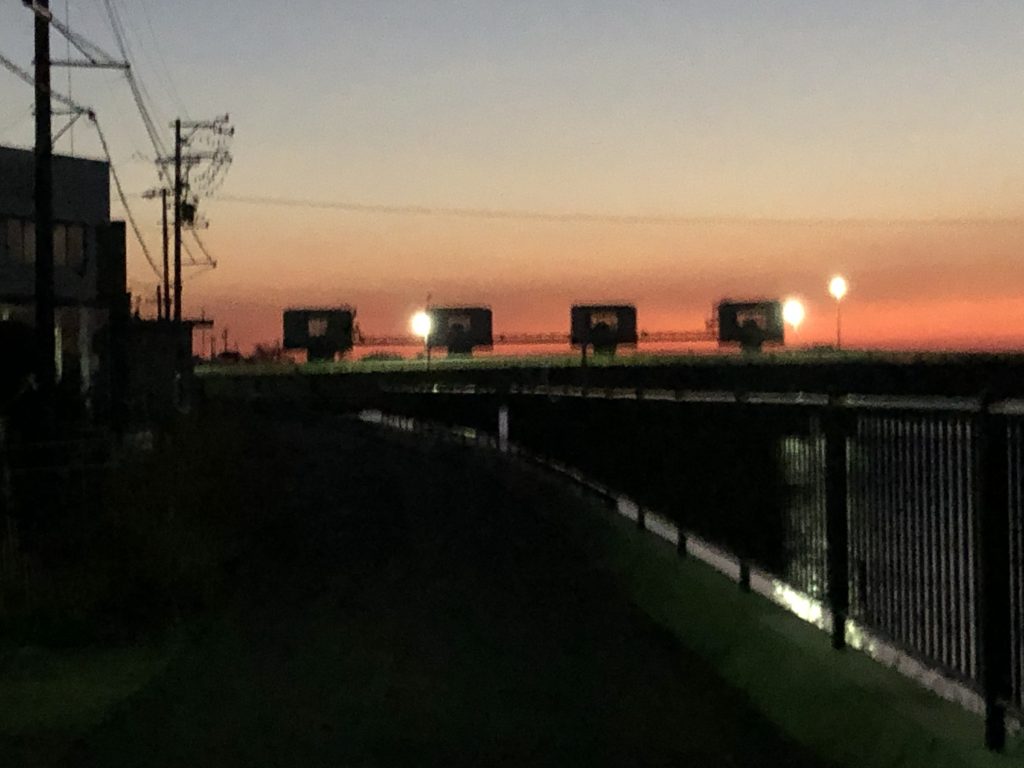 車検に行った日の朝、日の出前がきれいでパチリ。歩きながら片手で撮ったのでボケボケ。でもきれいな朝焼けでした。