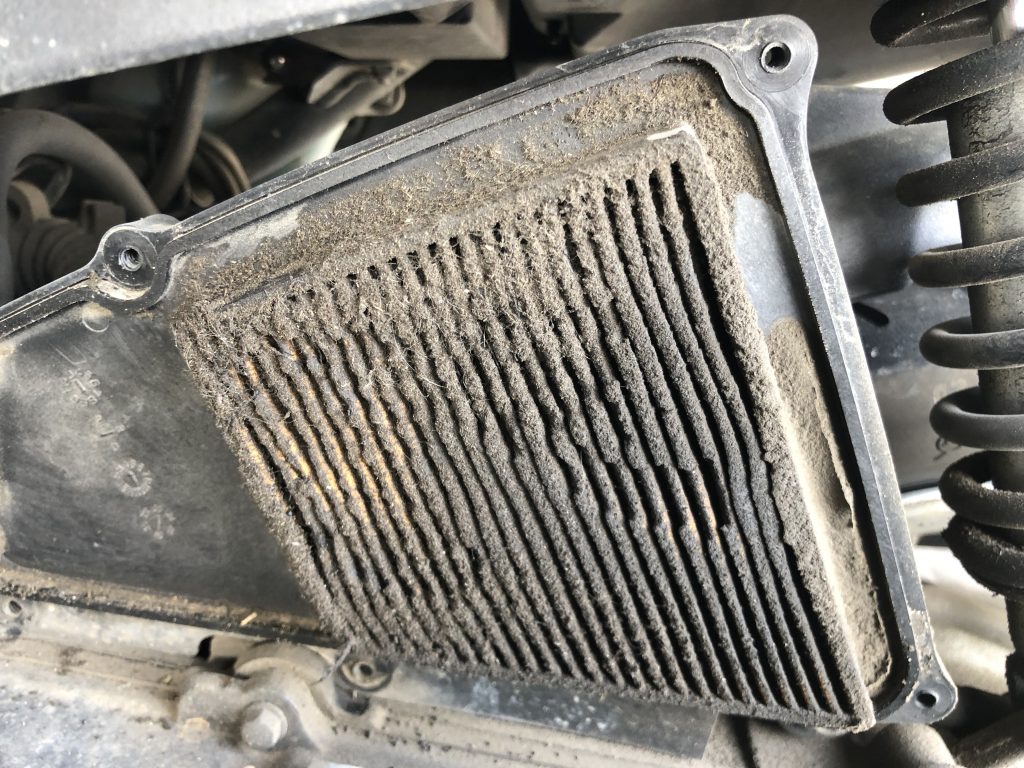 ギアのエアクリーナーは汚れるのですが、こんなにひどいのは久し振り。空気が通るのかな?