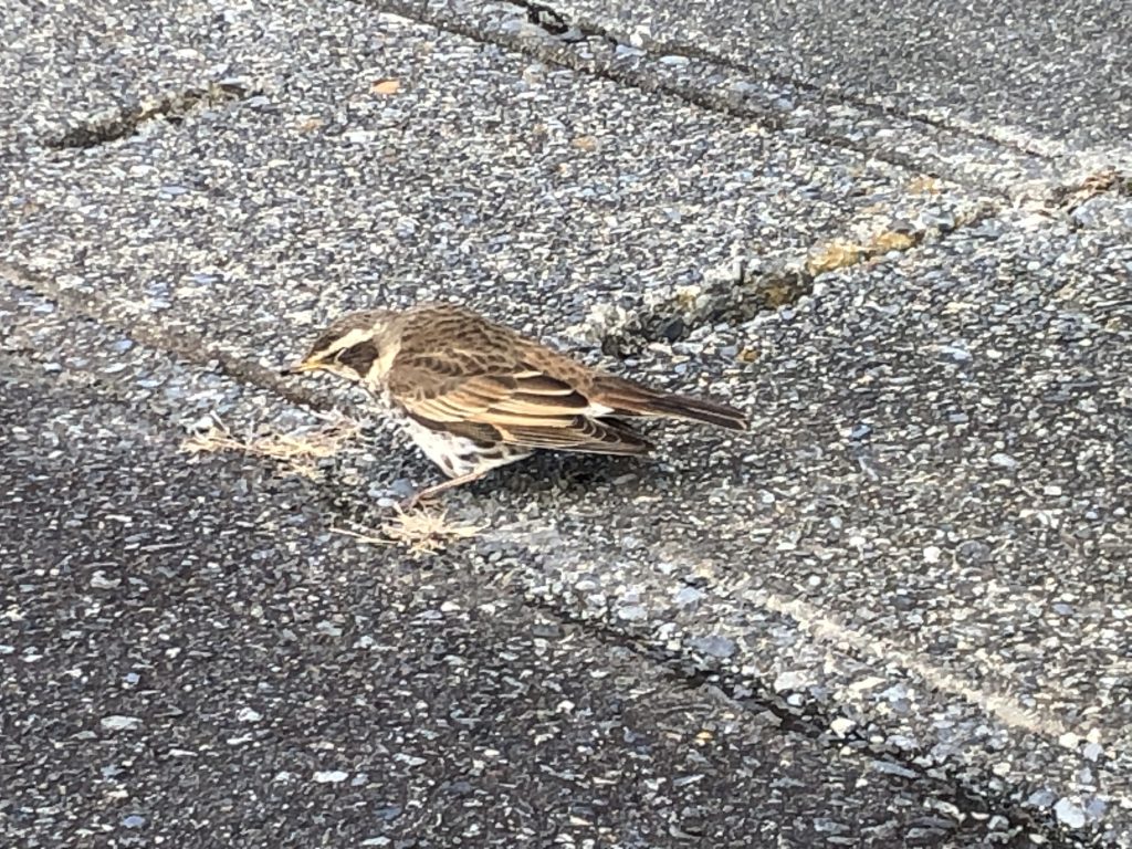 本日午前中に工場で仕事をしているとショールームのガラスに何か当たった音が。外に出てみるとスズメよりも少し大きな鳥が、脳震とうを起こしたのかうずくまっていました。多分ツグミだと思われます。離れた場所から見守っていると無事飛び立っていきました。良かった。野鳥図鑑を買って勉強している店長です。