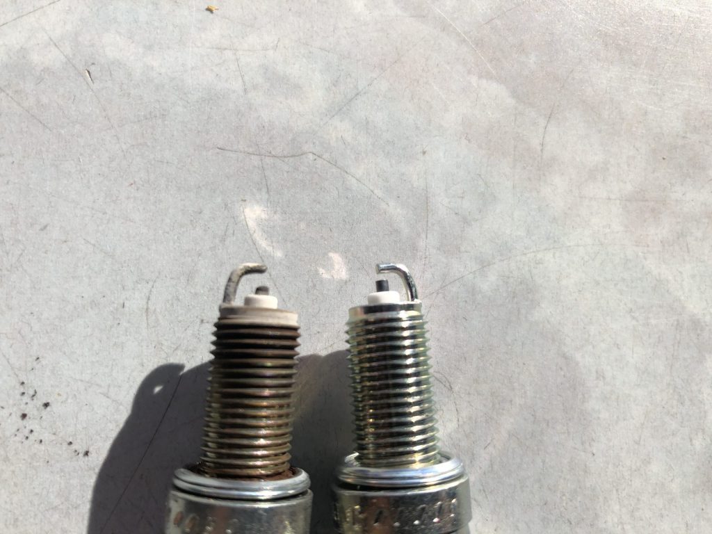 ディオ110のベルト交換のついでにプラグも交換。たぶん2万キロ位交換していないと思います。電極は丸く減っていました。これではよい火花は飛びません。もっと早く交換しましょう。
