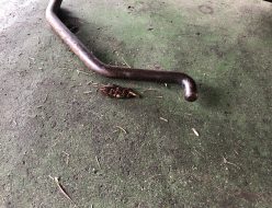 点検整備の依頼を受けたレッツ4。エアクリーナーを外すとゴキブリの死骸が。 ヘッドライト球が切れていたのでハンドルカバーを外すと今度はバッタの死骸が。ほぼ山の中で使用している車両なので虫が入り込んでいても当然か。車検でお預かりした車両でカウル内に鳥の死骸があるとビックリします。