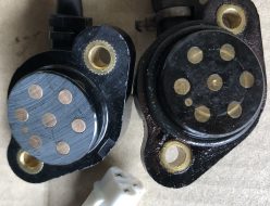 メーター内のギアポジションインジケーターで6速の表示が時々出ないGSR250が入庫。ミッション側のスイッチを外してみると接点が摩耗していました。左側が新品です。